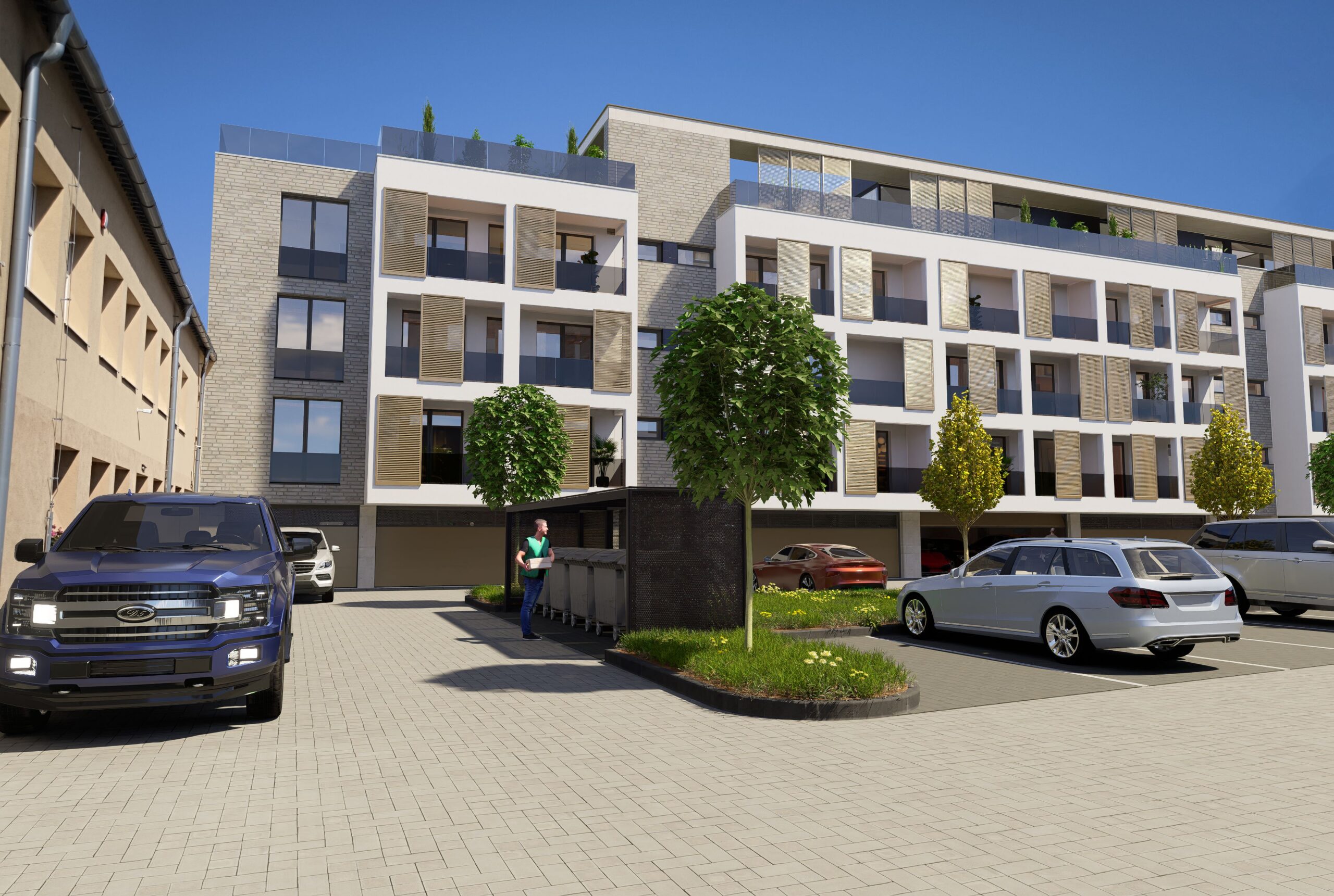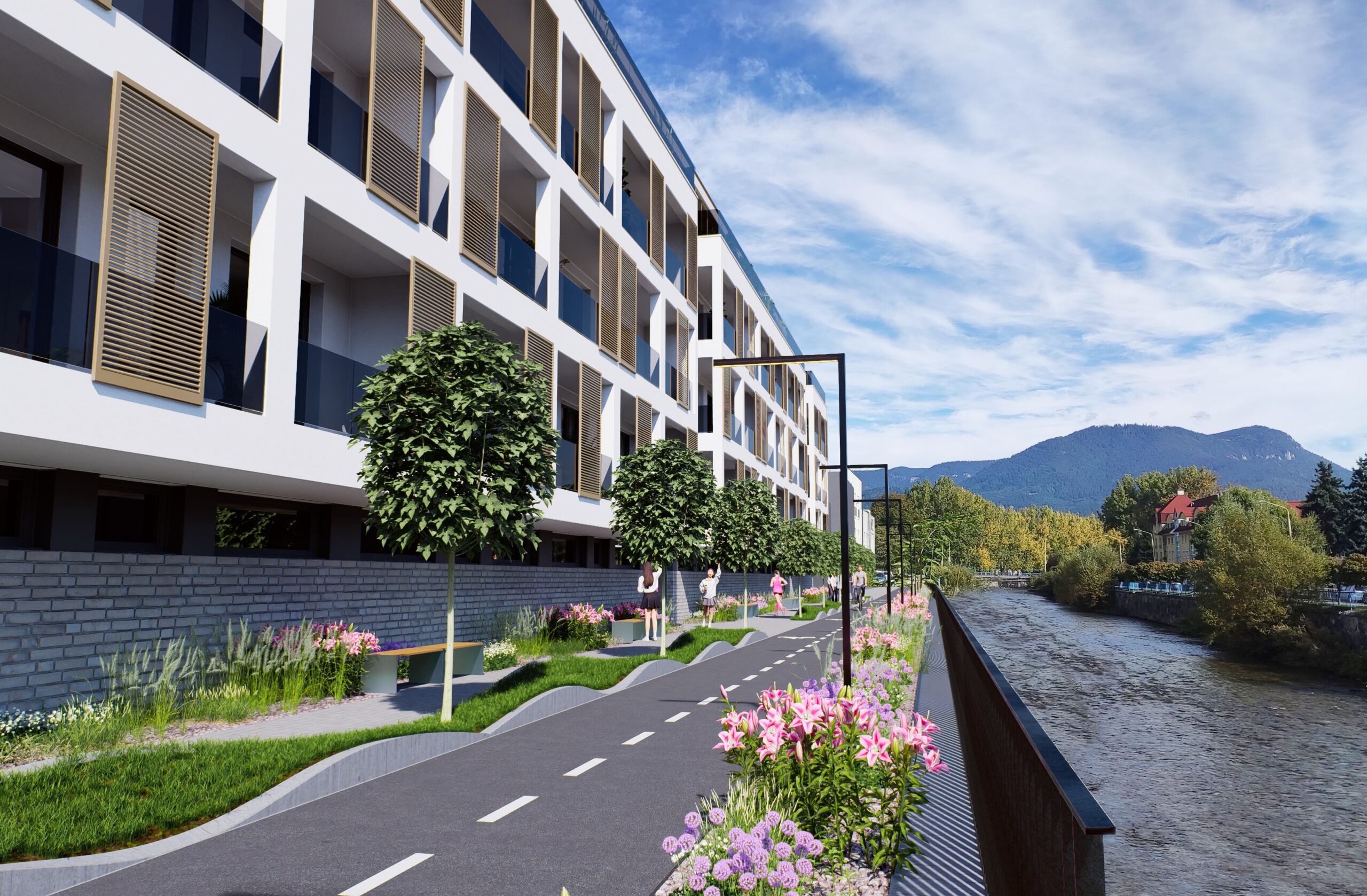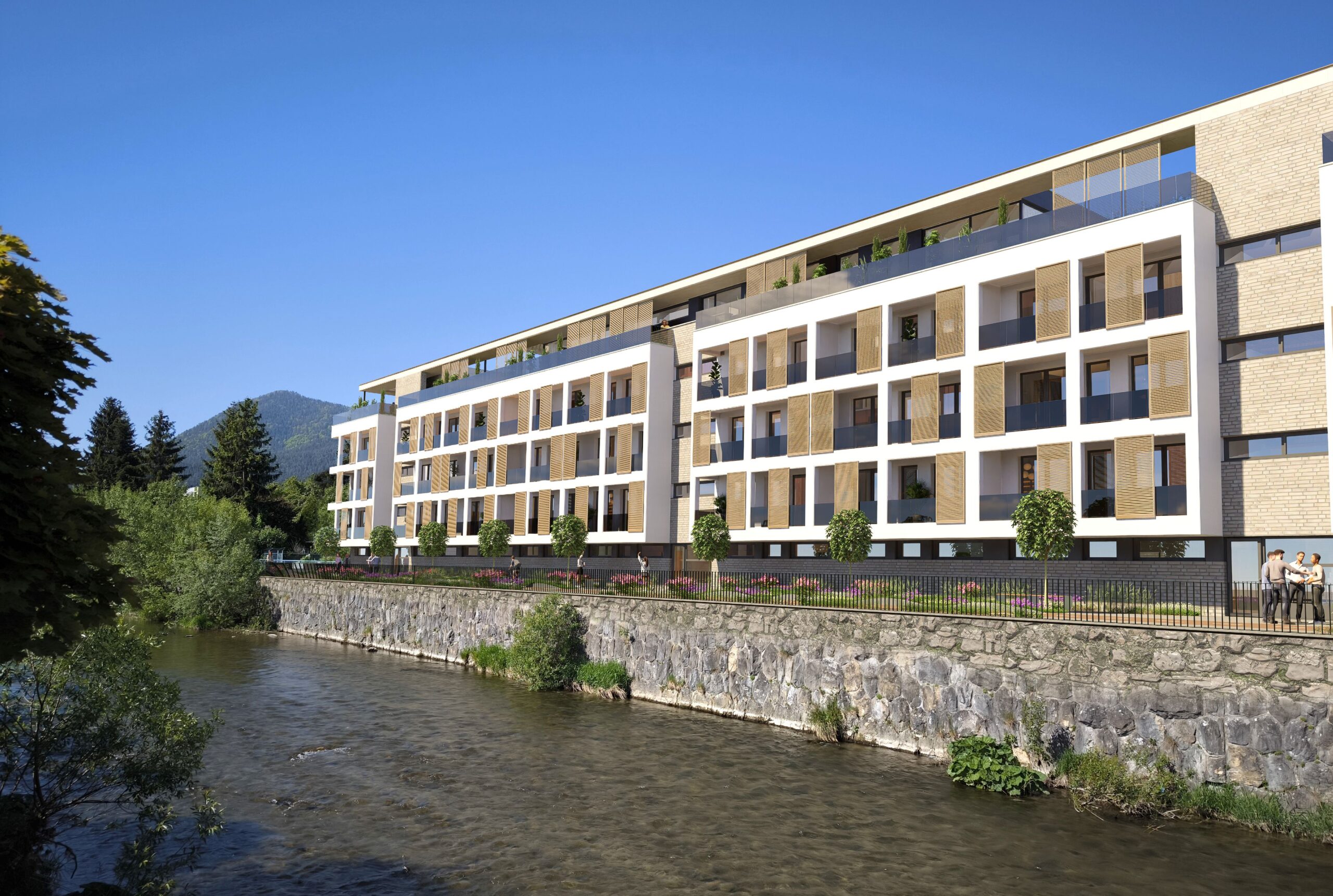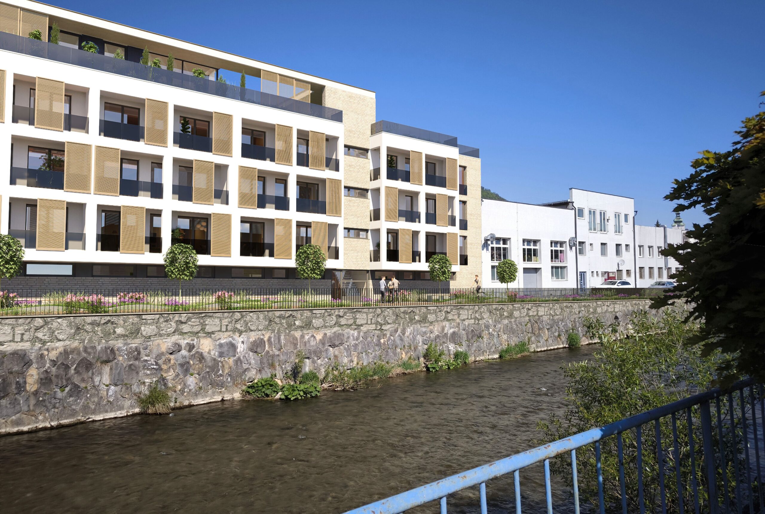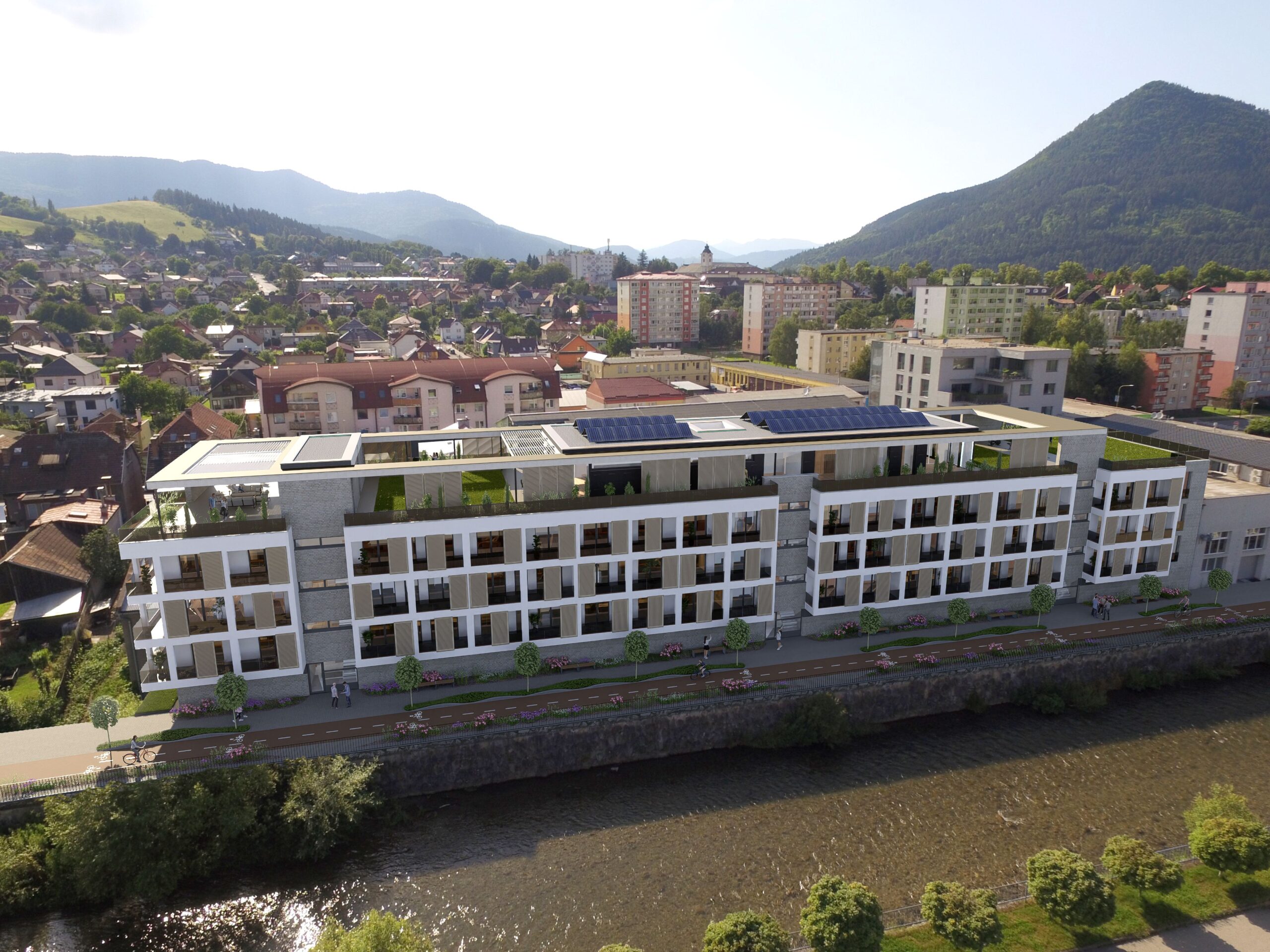 Výsledkom je súčasný bytový dom s jasnou architektonickou logikou: jednoduchá forma, veľa svetla, chránené loggie, kvalitné materiály a zelené strechy ako prirodzené rozšírenie bývania.